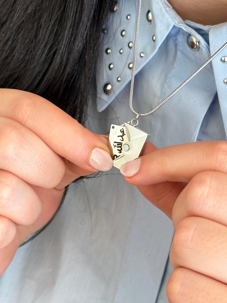 اهدي من تحب قطعه مميزه سلسال الظرف انيق و جميل ويحمل الاسم او العباره حسب الطلب مناسب لكِ أو كهدية رائعة يكتب عليها من داخل القلادة مطلي ذهب وفضة